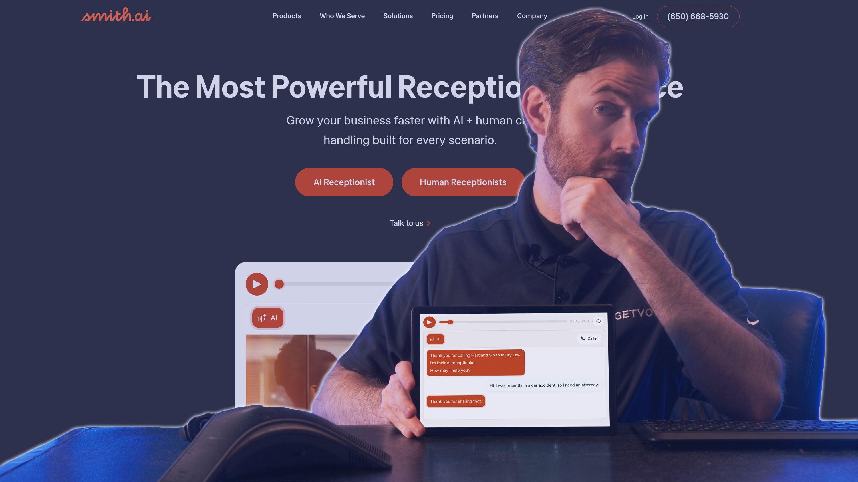 Hybrid services like Smith.ai that combine AI with live agents start at $95/month for self-service and go up to $2,000/month for high-volume done-for-you plans.