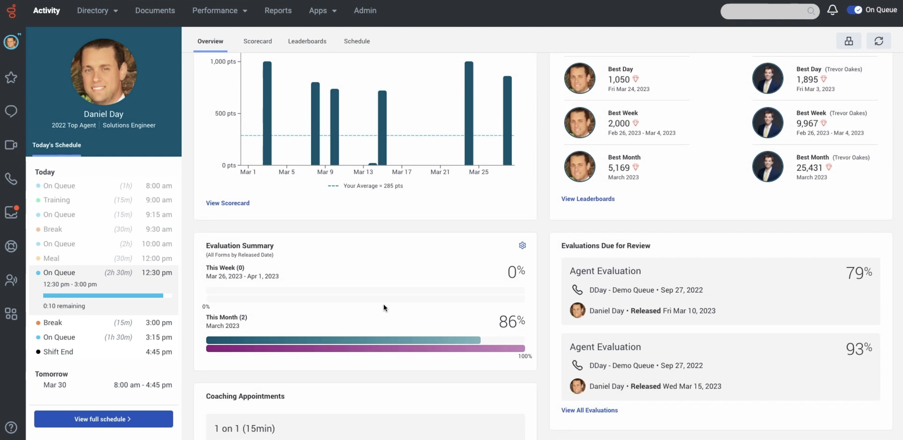 Genesys Gamification displays employee KPIs on company-wide leaderboards, on teamwide or individual performance scorecards, or even within a personalized employee development hub. These development hubs contain individual feedback and assigned embedded training modules within one interface, making it easy for agents to improve their performance and pinpoint their strengths and weaknesses.