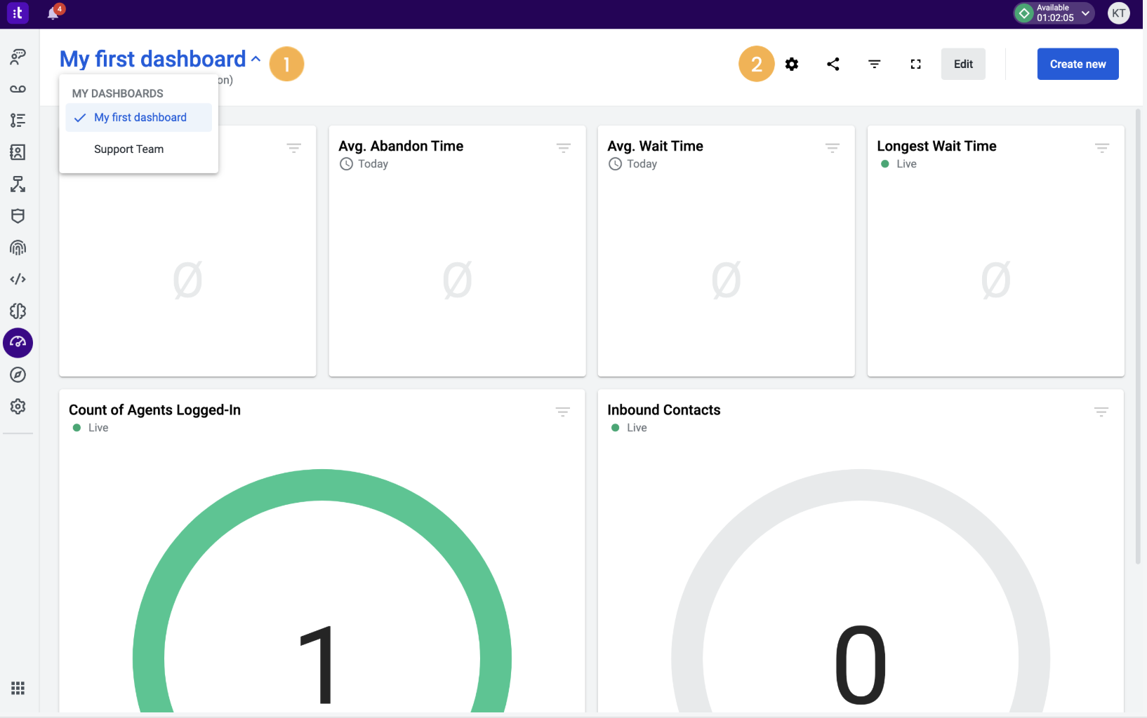- Threshold Configuration: Set custom alerts for a chosen metric such as calls waiting (ex.: 0-4 calls waiting = green, 5-9 calls waiting = yellow, 10+ calls = red)