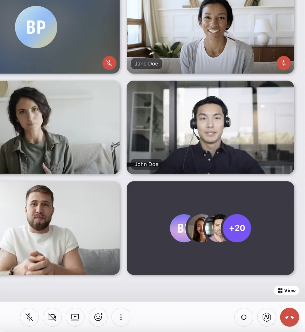 - “Grid” view: Shows each participant’s live video or contact card