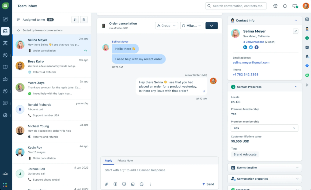 We liked the unified inbox for its aggregation of chat, email, and other social media messaging channels. If you’re already familiar with or bought into the whole Freshdesk help desk and Freshsales CRM ecosystem, you’ll be glad to see a seamless data flow across the Freshworks world. What’s also great is the multilingual support, which lets you address customers worldwide.