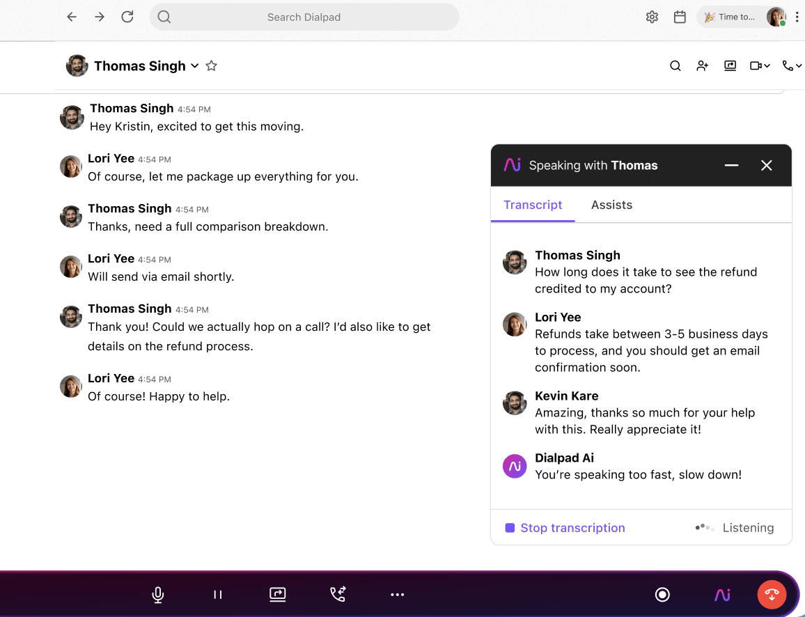 Dialpad's AI-powered features are limited in the Dialpad Connect platform but it does include real-time call transcriptions, analytics, and reporting. Dialpad Support includes AI moments in all plans and offers AI live coach cards (Agent Assist), virtual agents and AI scorecards on some plans.