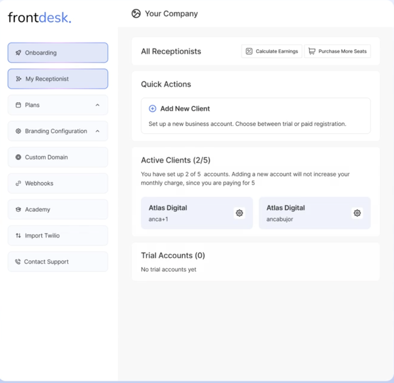 Smith.ai is more expensive, but offers better customer support as well as more advanced features such as rich business insights and client intake while Front Desk offers more AI voice options.