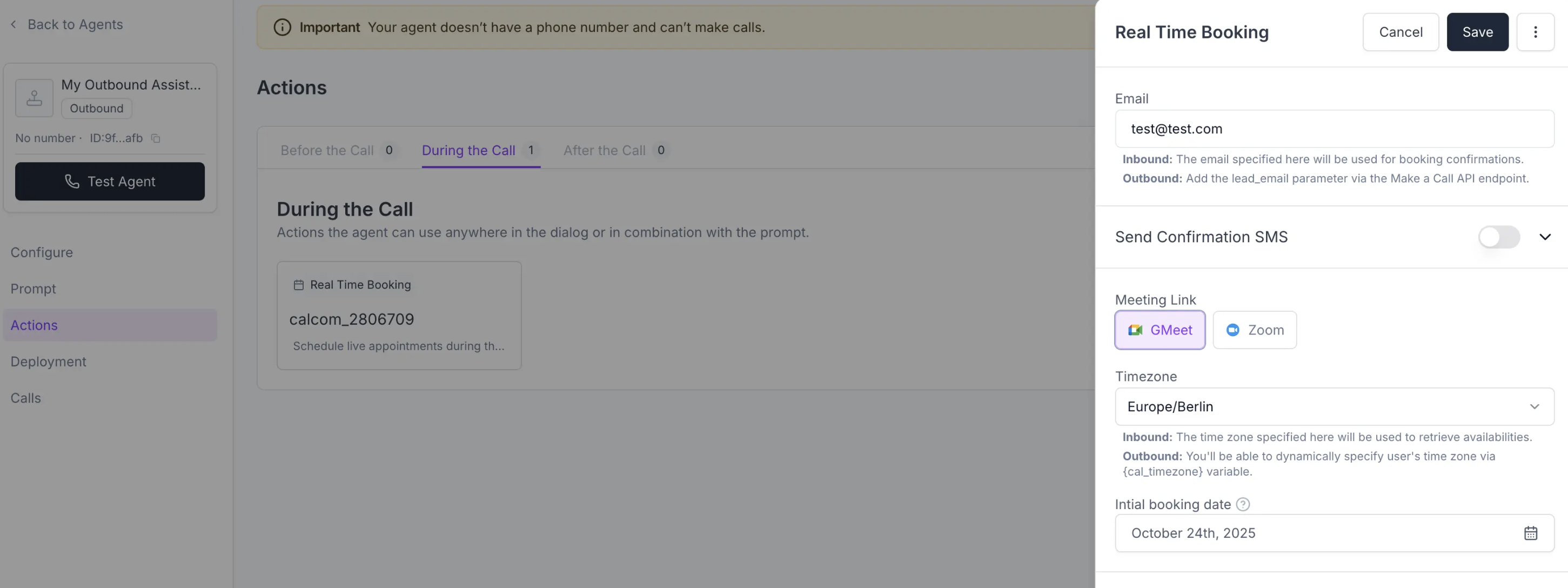 Synflow AI Receptionists integrate with your company calendar to check calendar availability and schedule appointments while on a call. The AI Agent is able to suggest available appointment times, confirm the booking instantly, handle time zone conversions, and send confirmation without any human involvement.