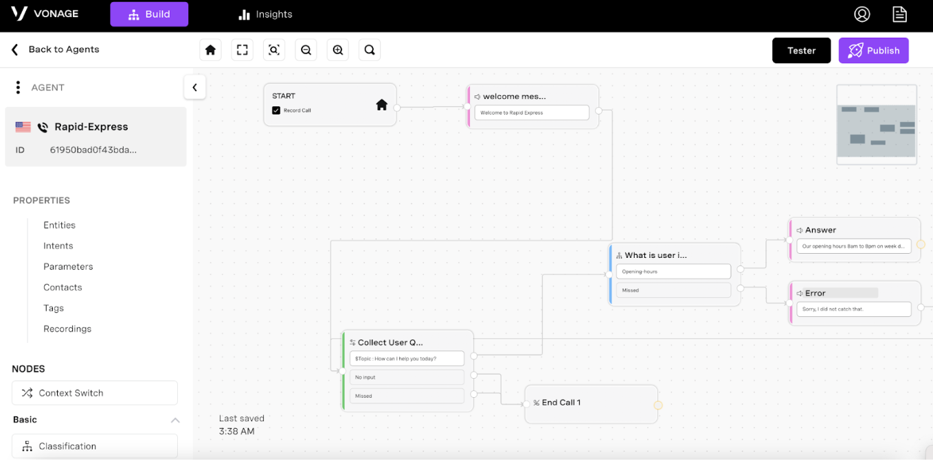 Vonage's AI Studio is a speparate subscription with a free version and two plans. It allows users to build and deploy custom conversational AI Agents at a large scale. The platform is no code/low code, and there is an option to purchase a custom package that is completely built and managed by Vonage AI experts.